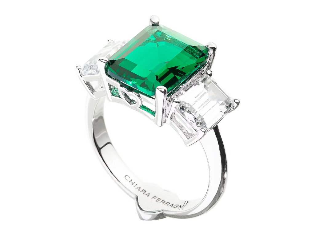 PRSTEŇ CHIARA FERRAGNI ŽENY J19AWJ05018 (18 ). Materiál: MATERIÁL: NEHRDZAVEJÚCA OCEĽ. Farba: čierna: FARBA: ZELENÁ. Rozmery: 18.. . SMARAGDOVÝ PRSTEŇ STRIEBORNÝ+WH CZ+GN NANO S18