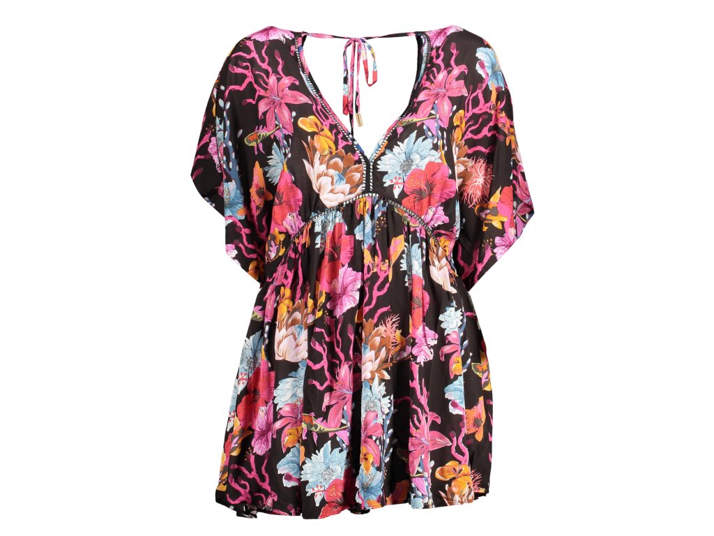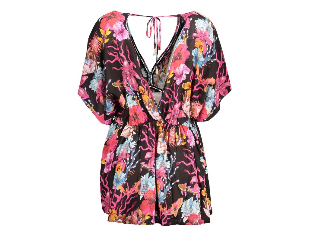 Tento pôvabný kúsok je dokonalou ukážkou letného štýlu a elegancie. 🥰 Krátke šaty s bohatým kvetinovým vzorom sú navrhnuté tak, aby ste sa cítili sviežo a voľne. Model má krátke rukávy, ktoré pridávajú na jeho ležérnom vzhľade.