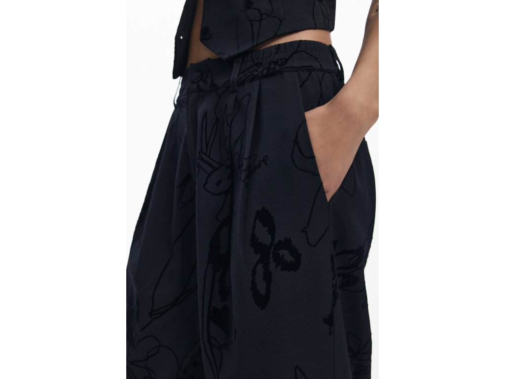 🌸 Detaily a dizajn: Tieto nohavice sú ozdobené precíznymi kvetinovými motívmi, ktoré im dodávajú romantický nádych. Flock technika zdobenia pritom zaručuje, že každý detail nádherne vynikne na povrchu látky.