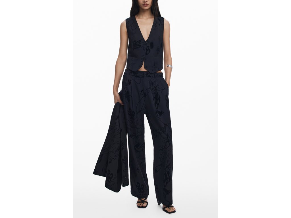 👖 Strih: Nohavice majú široký strih typu palazzo, ktorý umožňuje maximálnu voľnosť pohybu a vytvára elegantnú siluetu.