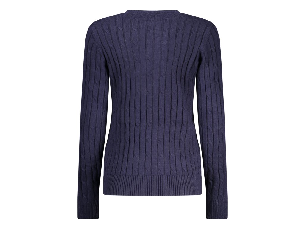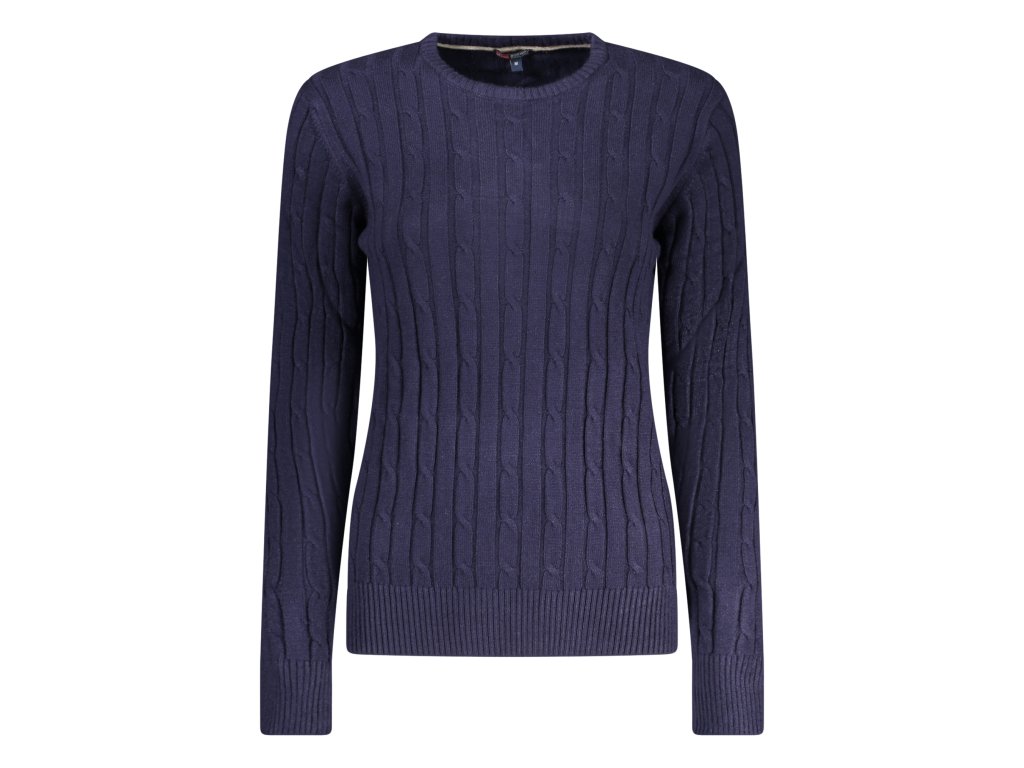 Hlboká námornícka modrá, decentné vyšívané logo NORWAY 1963 na hrudi, klasické vrkoče a rebrované lemy – sveter, ktorý vyzerá draho a štýlovo kdekoľvek