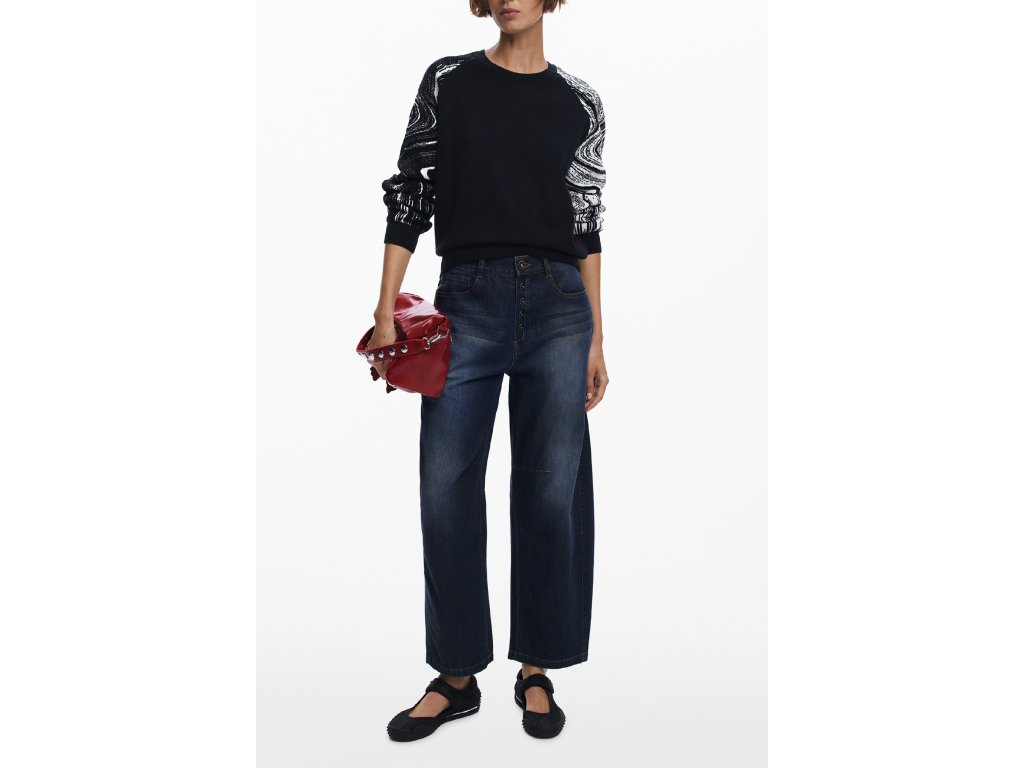 Predstavujeme vám jedinečný kúsok, ktorý nesmie chýbať vo vašom jesennom šatníku. Táto dámska dlhá blúzka s okrúhlym výstrihom je dokonalým spojením komfortu a štýlu. Na rukávoch sa nachádzajú výrazné kontrastné detaily, ktoré pridávajú eleganciu a unikátnosť celkovému dizajnu.