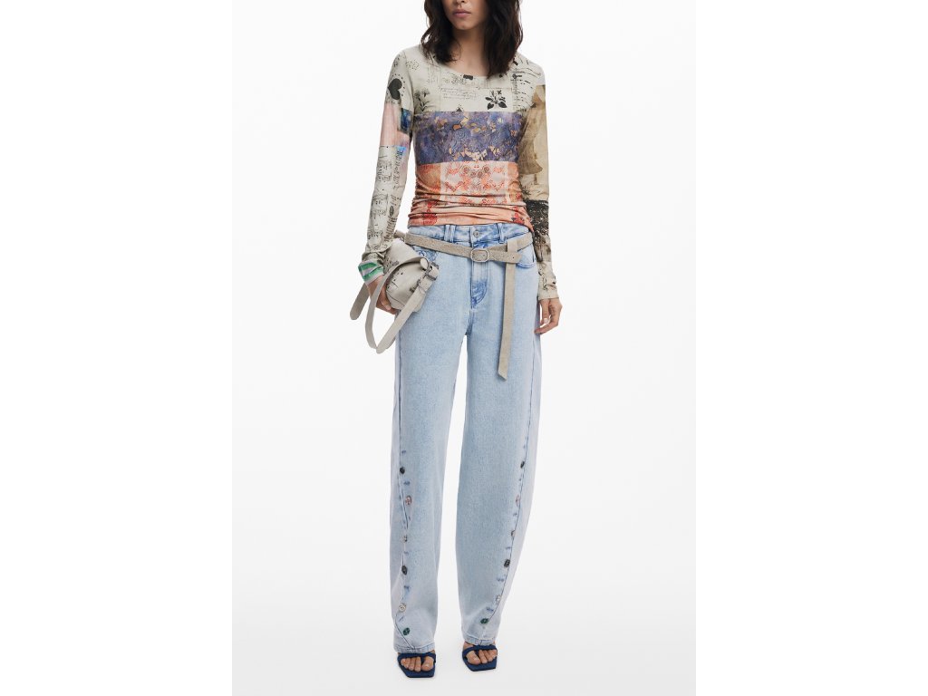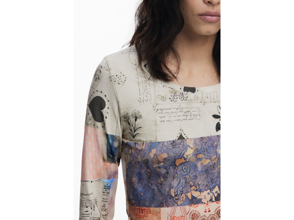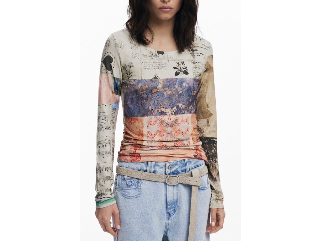 Tento unikátny kúsok odevu nesie ducha umenia a kreativity priamo na vašom tele. Blúzka s dlhými rukávmi Limbani ponúka zmes rôznych vzorov a motívov, ktoré sa prelínajú do sofistikovanej a výraznej fantázie.