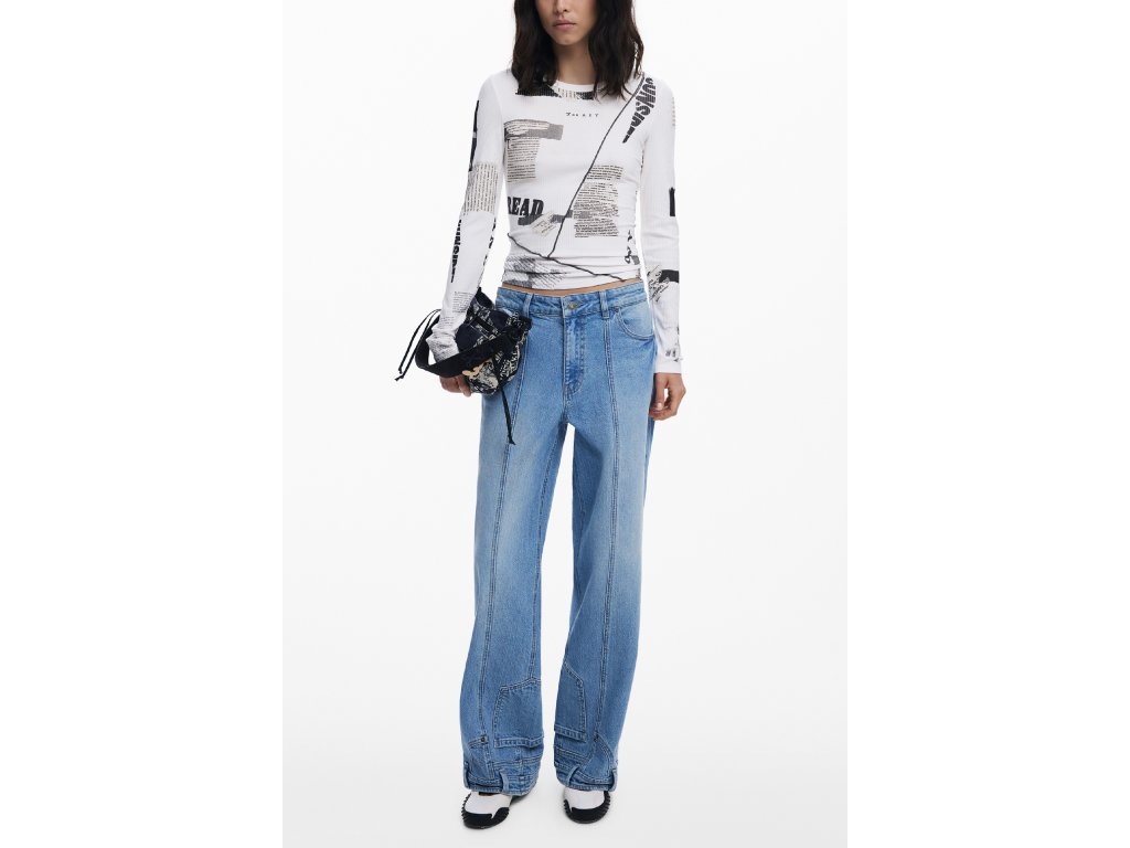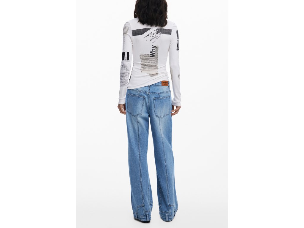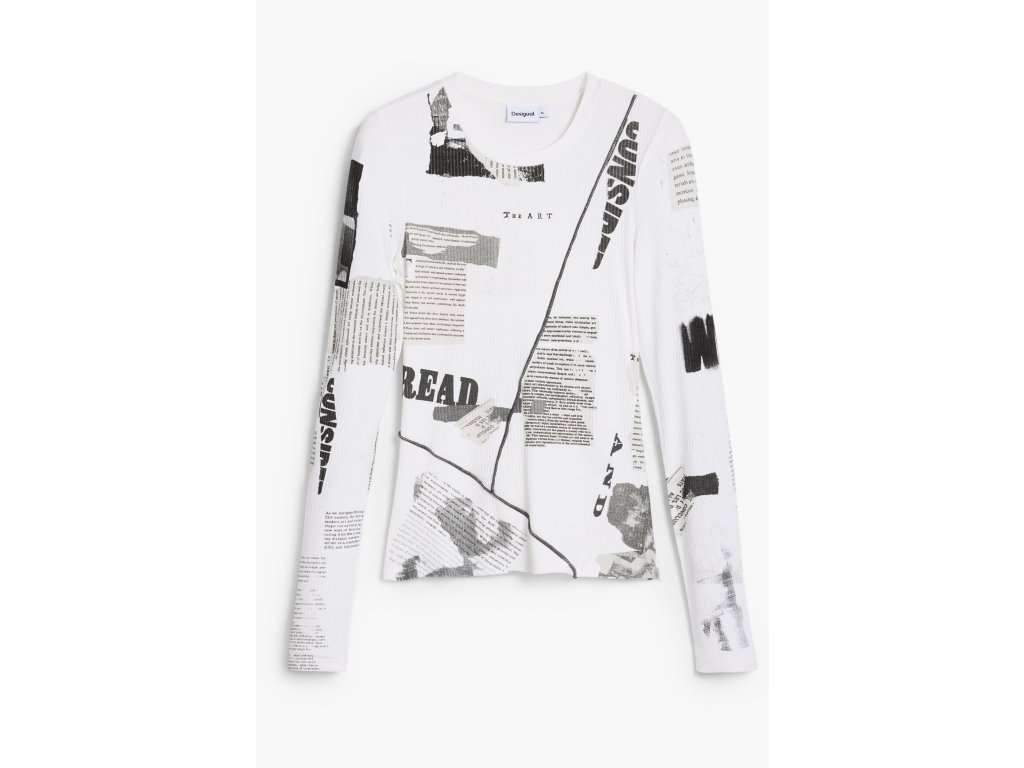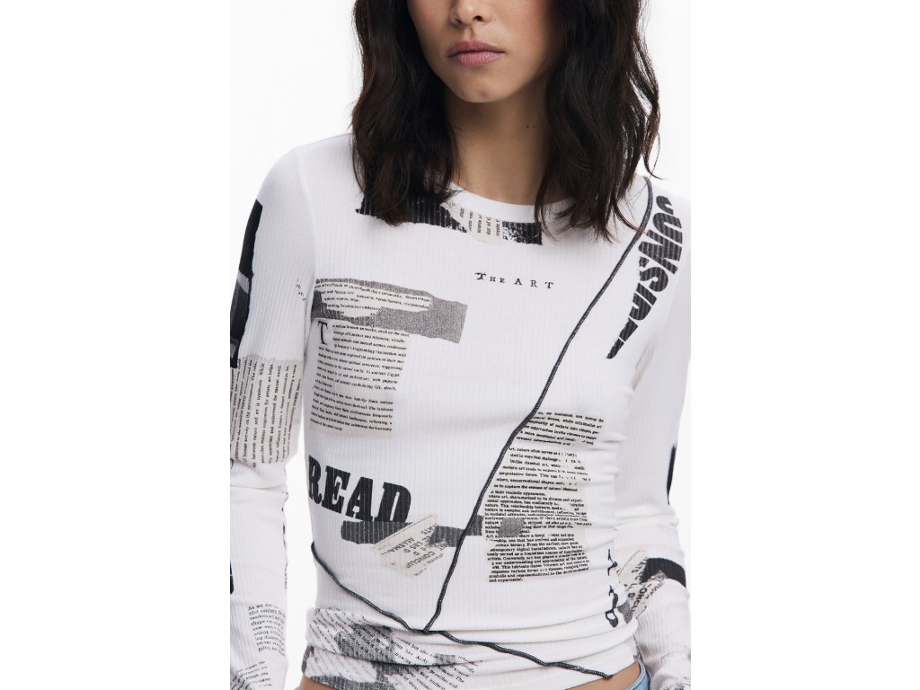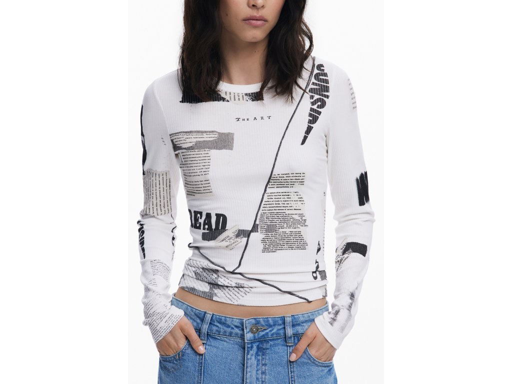 Preskúmajte nový svet módy s touto jedinečnou dámskou tričkom s dlhými rukávmi, ktoré v sebe spája moderný dizajn a pohodlie. Toto tričko ponúka jedinečnú potlač inšpirovanú novinovými motívmi, ktorá vás okamžite odlíši od davu. Jemne rebrovaný materiál je kombináciou 95% viskózy a 5% elastanu, čo zaručuje príjemný pocit na pokožke a perfektné prispôsobenie postave.