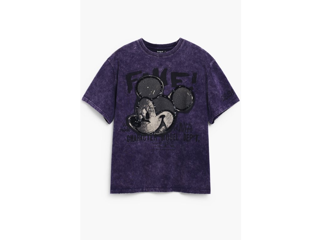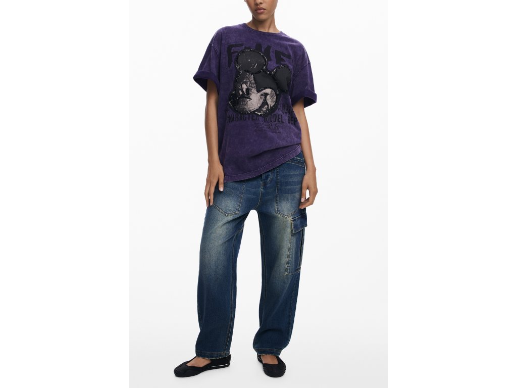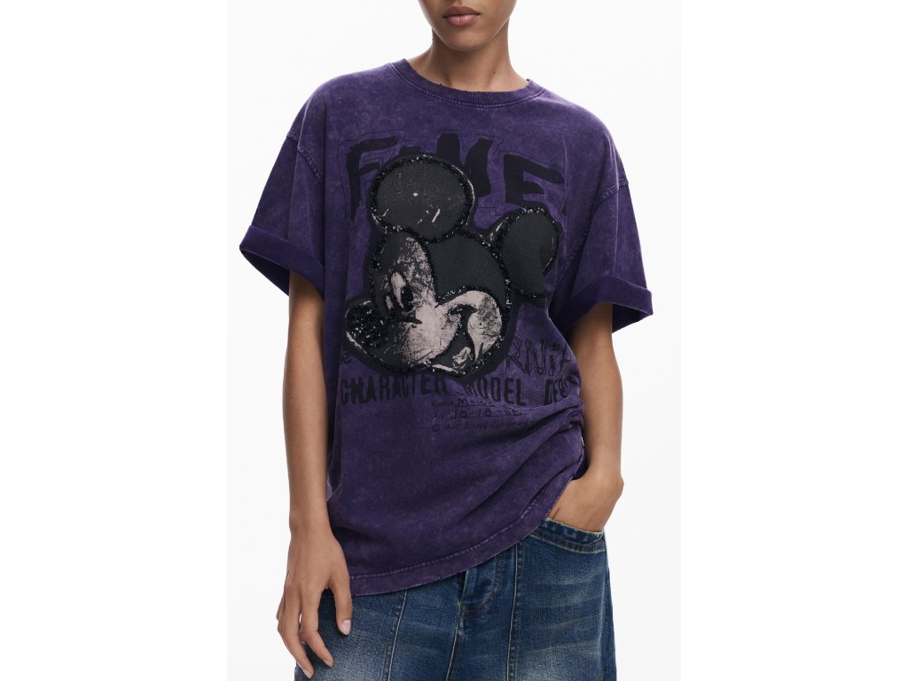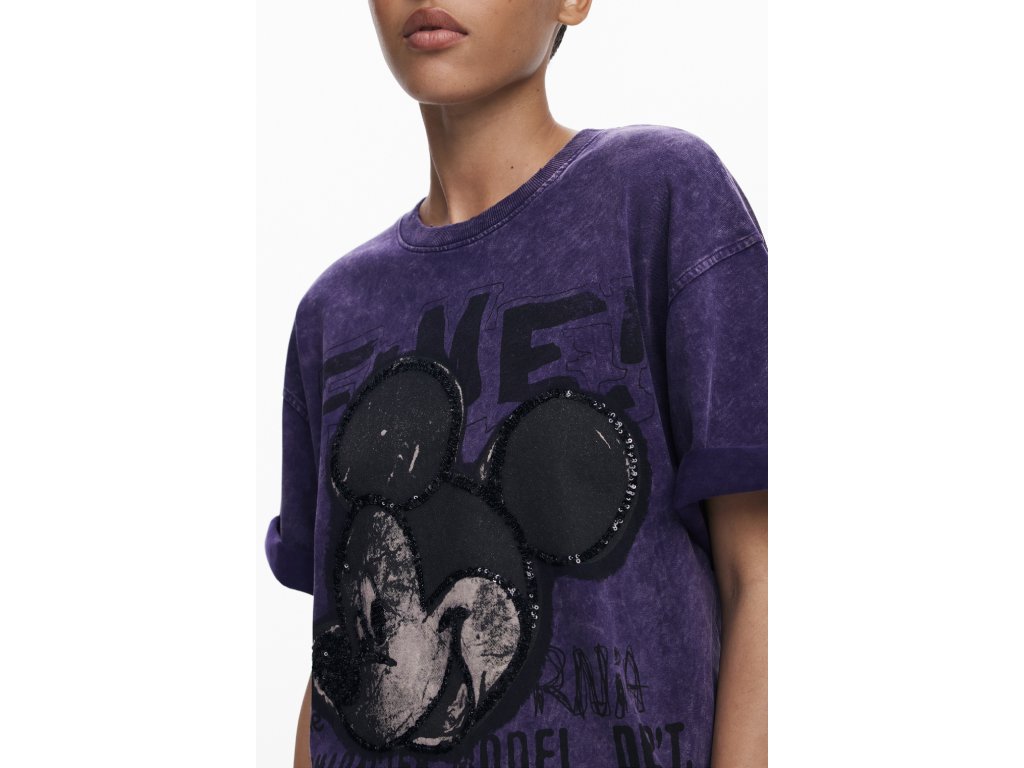 Výrazný dizajn s potlačou ikonickej postavičky na prednej strane je ozvláštnený aplikáciami flitrov, ktoré pridávajú tričku jedinečný a živý vzhľad. Dizajn je doplnený nápismi, ktoré dodávajú moderný a mladistvý dojem.
