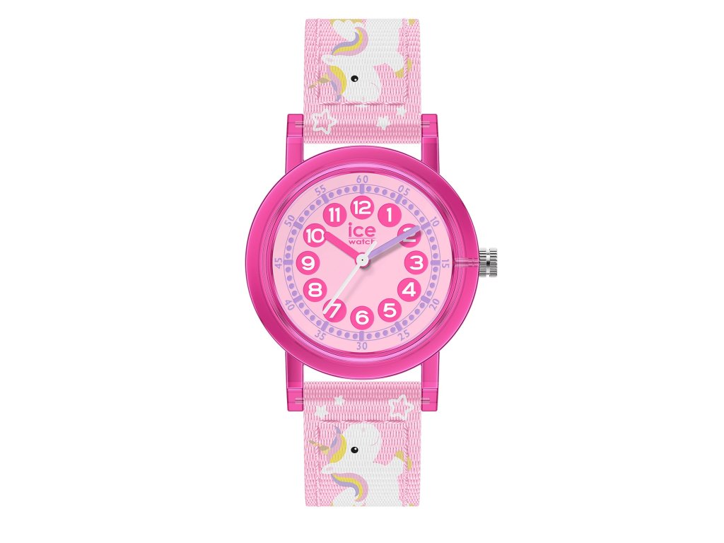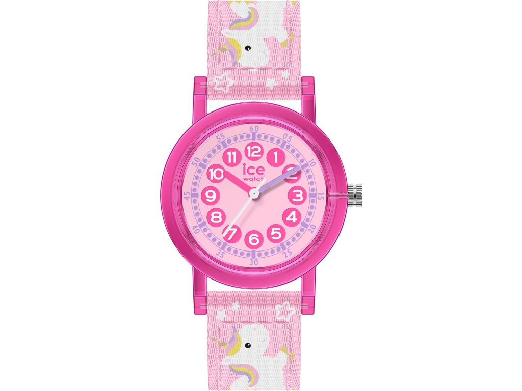 Dievčenské hodinky ICE learning Pink Unicorn boli navrhnuté tak, aby bolipohodlne nosiť, prinášať radosť a zároveň odolávať každodenným dobrodružstvám detí. Ciferník s výraznými číslicami a farebne odlíšenými hodinami a minútamipodporuje jednoduché učenie sa času.