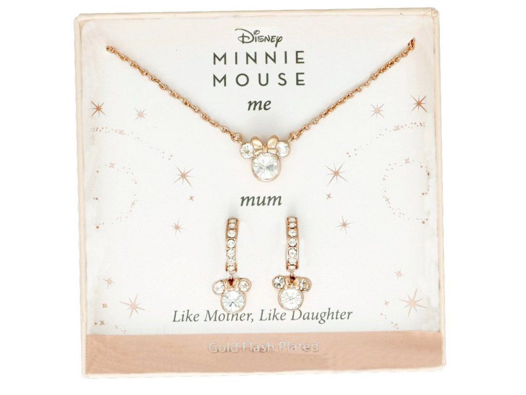 Darčeková súprava Disney je vysnívaným šperkom pre každú milovníčku Minnie Mouse. Súprava sa skladá znáhrdelník s retiazkou, príveskom Minnie a okrúhlymi náušnicami s ikonickou siluetou myši s mašľou. Prívesok a náušnice sú osadené kubickými zirkónmi, ktoré šperkom dodávajú luxusný vzhľad.