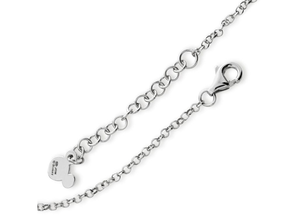 Náramok zdobený hlavou Disneyho postavičky Minnie Mouse je vyrobený z kvalitného striebra s lesklou povrchovou úpravou. Hlava myšky Minnie jezdobené čírymi kryštálmiktoré veľmi pekne zvýrazňujú celkový vzhľad náramku. Maximálna dĺžka náramku je 17 cm. Dodáva sa v štýlovej krabičke. Hmotnosť šperku je 3,2 g.
