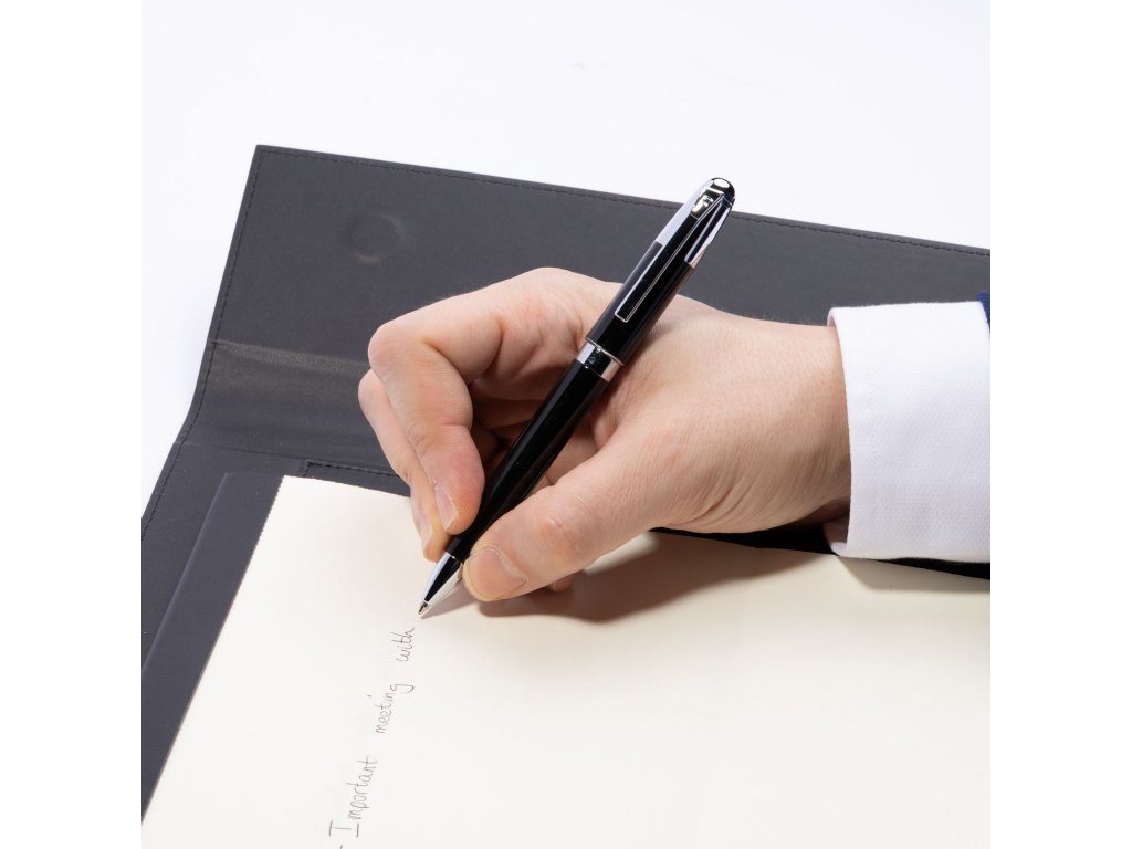 Lesklý lak v kombinácii s čiernym povrchom a chrómovými detailmi pôsobí charizmaticky a sebavedomo.Premyslené proporcie pera zaisťujú pohodlné držanie a plynulý pohyb po papieri - ideálne na každodenné poznámky, podpisy a špeciálne príležitosti.
