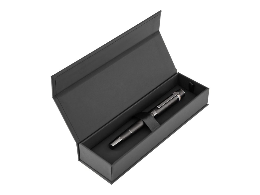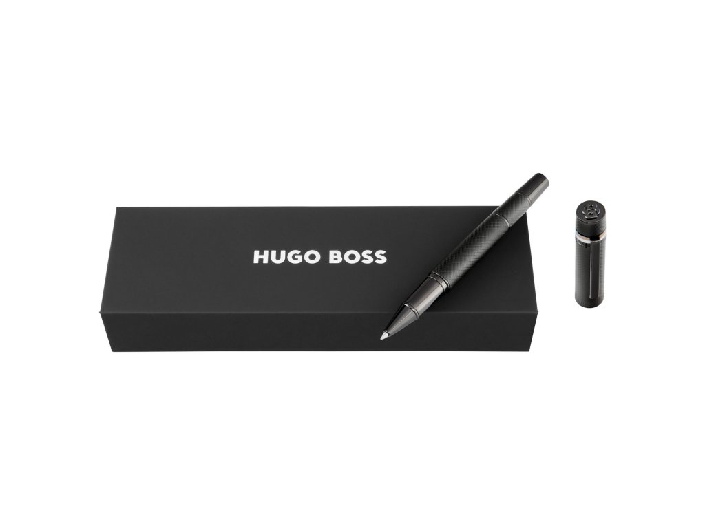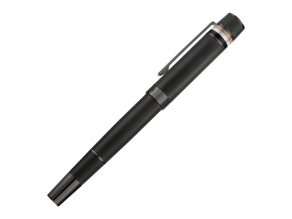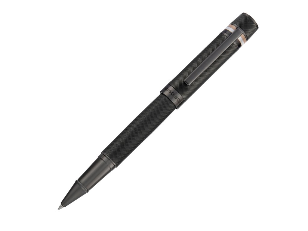 Gravírovaný architektonický vzor na tele pera dopĺňa ikonický trojfarebný pruhktorý odkazuje na vizuálnu identitu značky Hugo Boss a dodáva peru rozpoznateľný štýl. Povrch má štruktúrovaný vzhľad, ale zároveň plynulo prechádza do uzáveru s precíznym povrchom.