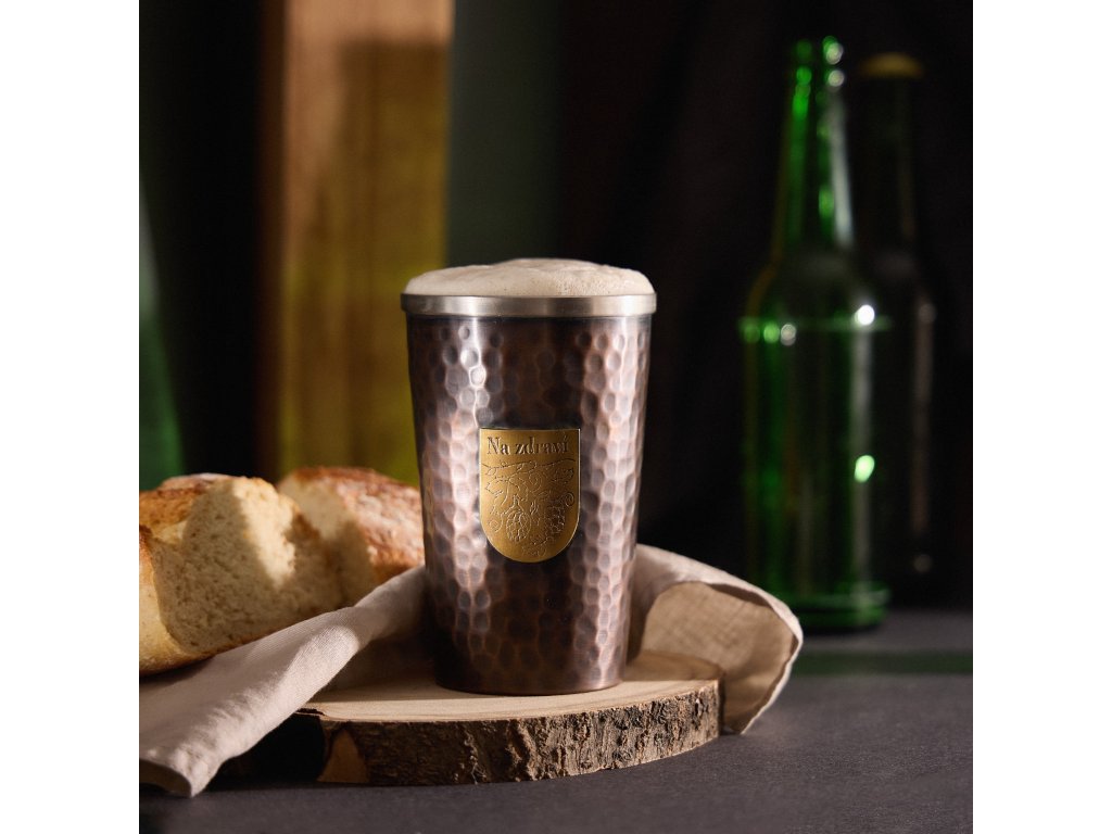 Vnútro pohára je vyrobené z potravinárskeho materiálunehrdzavejúca oceľ, ktorá udržuje teplotu piva dlhšie ako zvyčajne. Prémiová meď použitá na vonkajšej strane dodáva kanvici nezvyčajný vzhľad. Vďaka použitým materiálom je nádobanerozbitné a odolné a ideálne na festivaly alebo trampovanie s priateľmi.