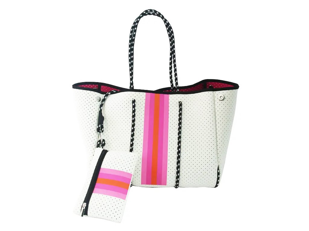 Neoprenová dámska plážová taška vodeodolná bielo-ružová JG052