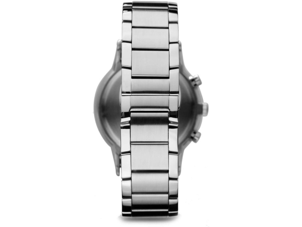 Okrúhle puzdro s priemerom 43 mm v čistom striebornom (silver-tone stainless steel) prevedení, výrazný čierny ciferník s jemným slnečným efektom alebo decentnými indexmi pre kontrast a eleganciu. Praktické ručičky, decentný monogram ARMANI na ciferníku. Tlaková spona pre pohodlné a bezpečné zapínanie.