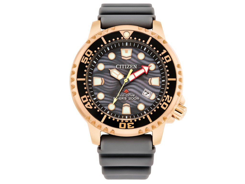 Predstavujeme vám tieto výkonné pánske potápačské hodinky CITIZEN z rady Promaster Dive – dokonalú voľbu pre muža, ktorý chce profesionálnu odolnosť, unikátny štýl a ekologickú technológiu. Model BN0163-00H je poháňaný Eco-Drive solárnou energiou – nabíja sa z akéhokoľvek svetla a nikdy nevyžaduje výmenu batérie. Certifikovaná potápačská kvalita (ISO 6425) v pôsobivom zlatom prevedení s čiernym ciferníkom a remienkom.