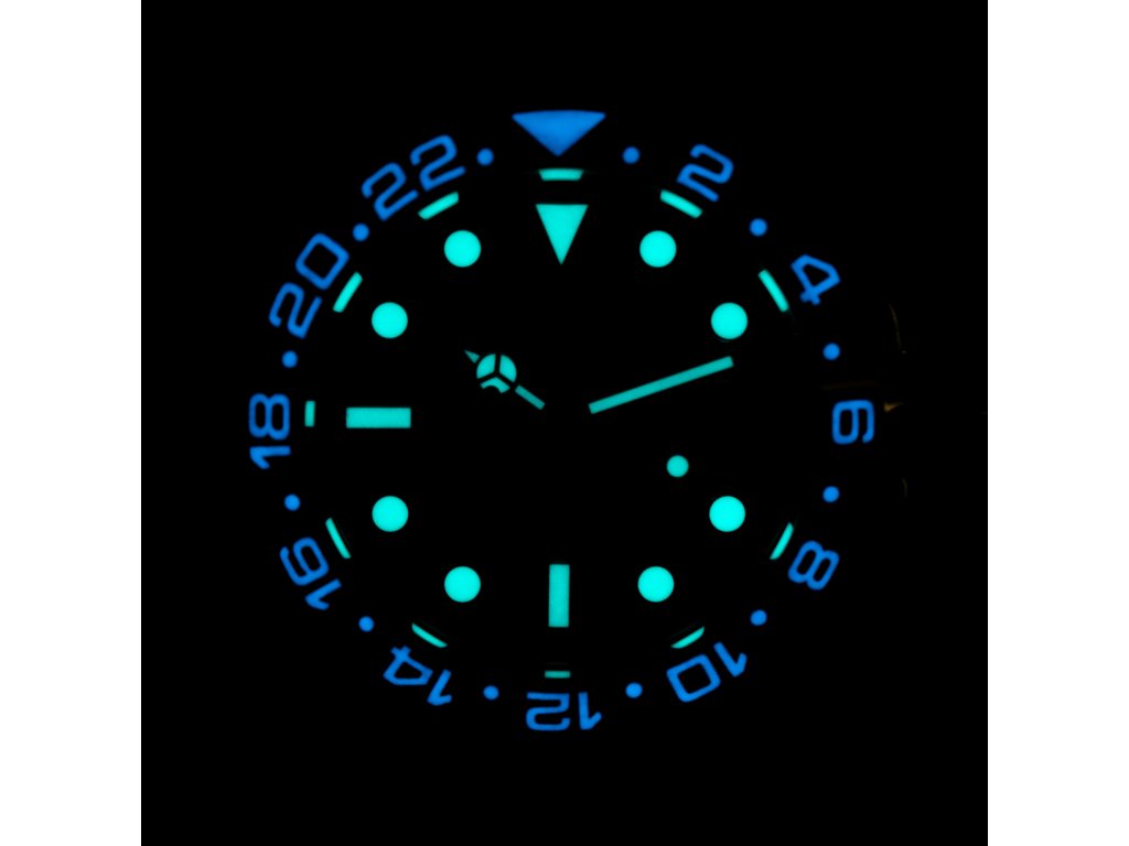 - Ciferník: modrý s luminiscenčnými prvkami
