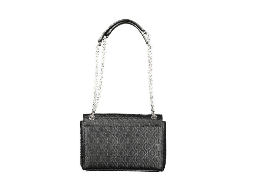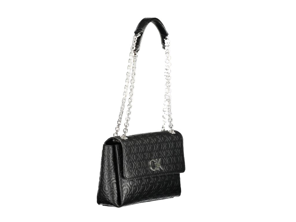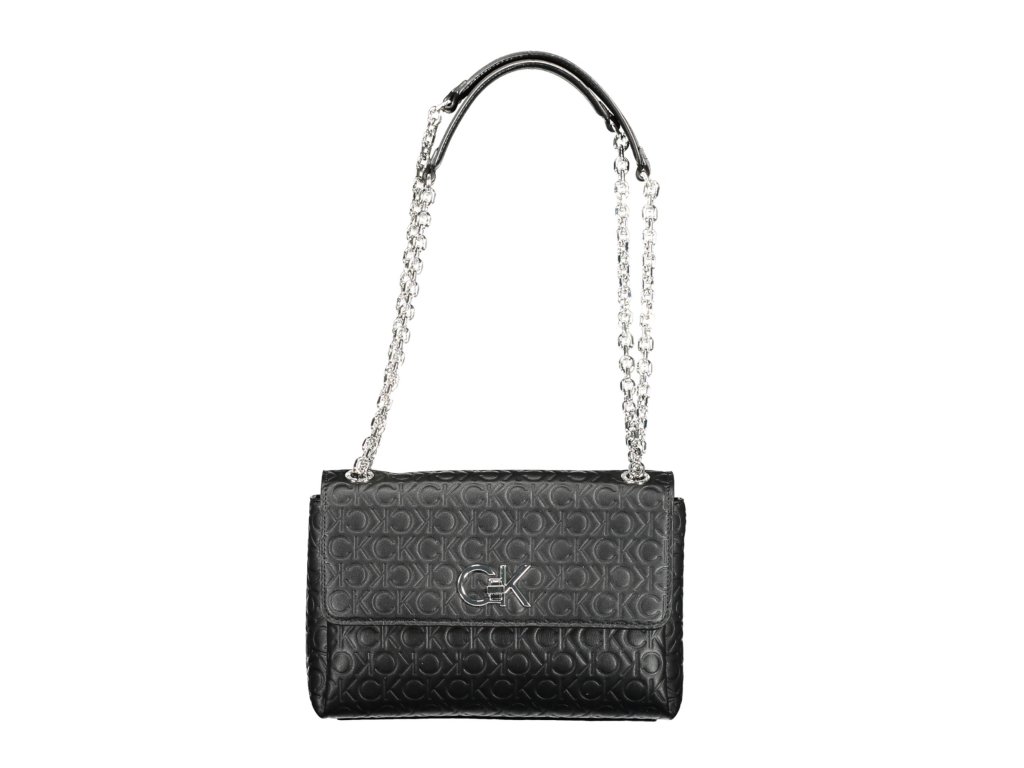 borsa 2 manici in catena, 1 tasca esterna, 2 scomparti, 1 tasca interna, dettagli a contrasto, chiusura con girello, logo, 100% polyester recycled