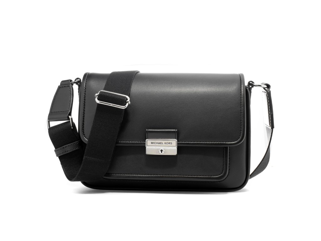 Kompaktná obdĺžniková kabelka s čistými líniami, hladkou pravou kožou v čiernej farbe a výrazným logom Michael Kors (typicky kovové alebo vyrazené). Regulovateľná popruha umožňuje nosenie cez rameno alebo crossbody. Rozmery 24 × 17 × 8 cm – ideálna veľkosť na mobil, peňaženku, kľúče, rúž, karty, slnečné okuliare, malý tablet a drobné veci, bez zbytočnej hrúbky.