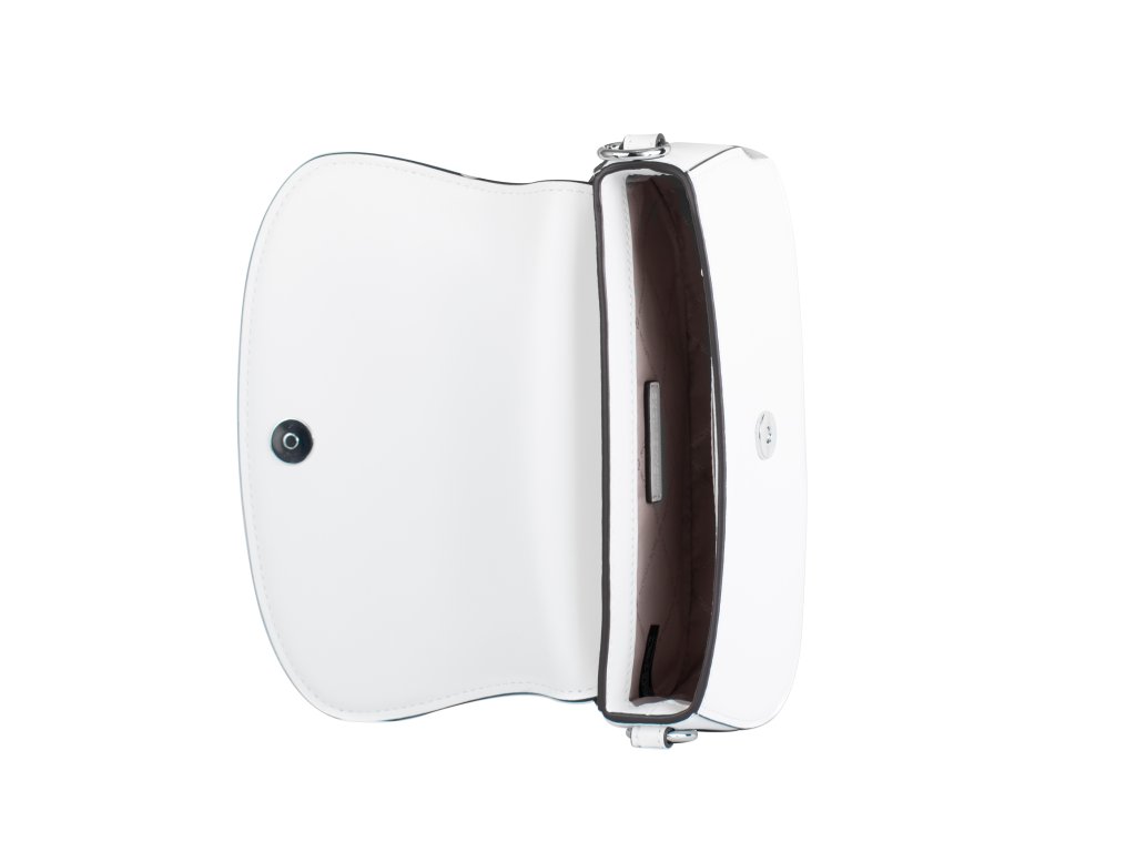 Kompaktná obdĺžniková kabelka s čistými líniami, hladkou pravou kožou v bielej farbe a výrazným logom Michael Kors (kovové alebo vyrazené). Regulovateľná popruha umožňuje nosenie cez rameno alebo crossbody. Rozmery 23 × 12 × 6 cm – perfektná veľkosť na mobil, peňaženku, kľúče, rúž, karty, slnečné okuliare a drobné veci, bez zbytočnej hrúbky.