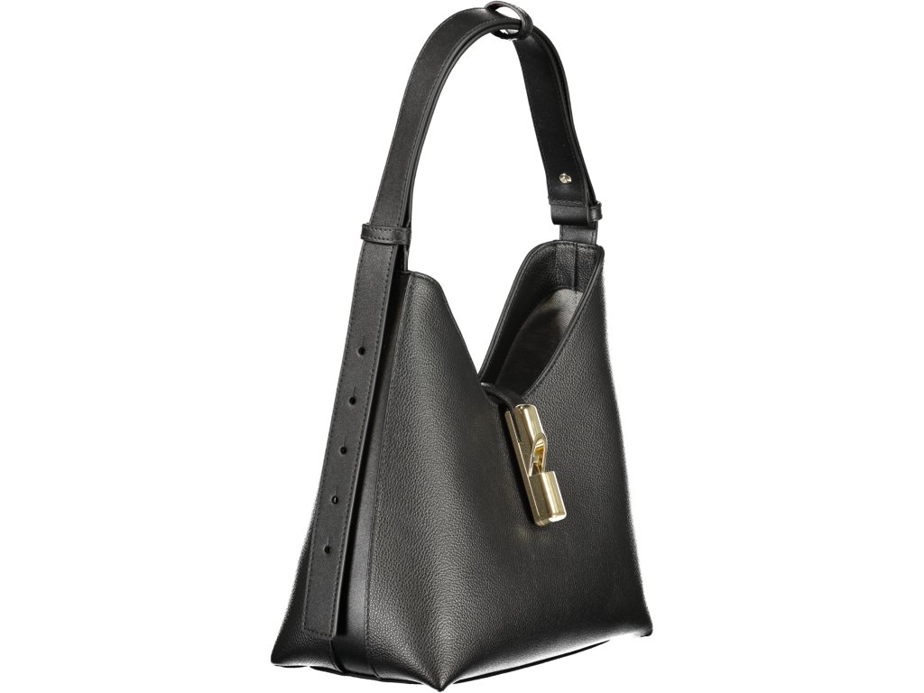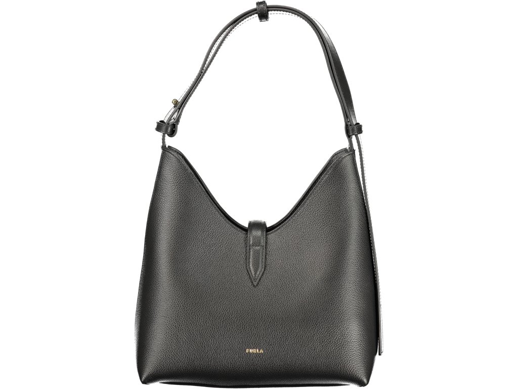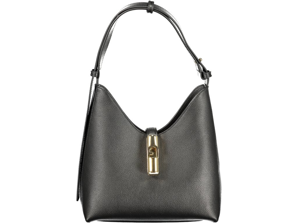 Hlboká sýta čierna, decentné zlaté logo FURLA na prednej strane, jemné prešívanie a kovové detaily, ktoré dodávajú ten pravý luxusný lesk
