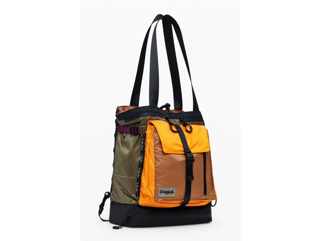 - Štýlový dizajn: Typický Desigual multicolored vzor v univerzálnej khaki farbe, nastaviteľné ramienka, magnetické a zipsové uzatváranie.