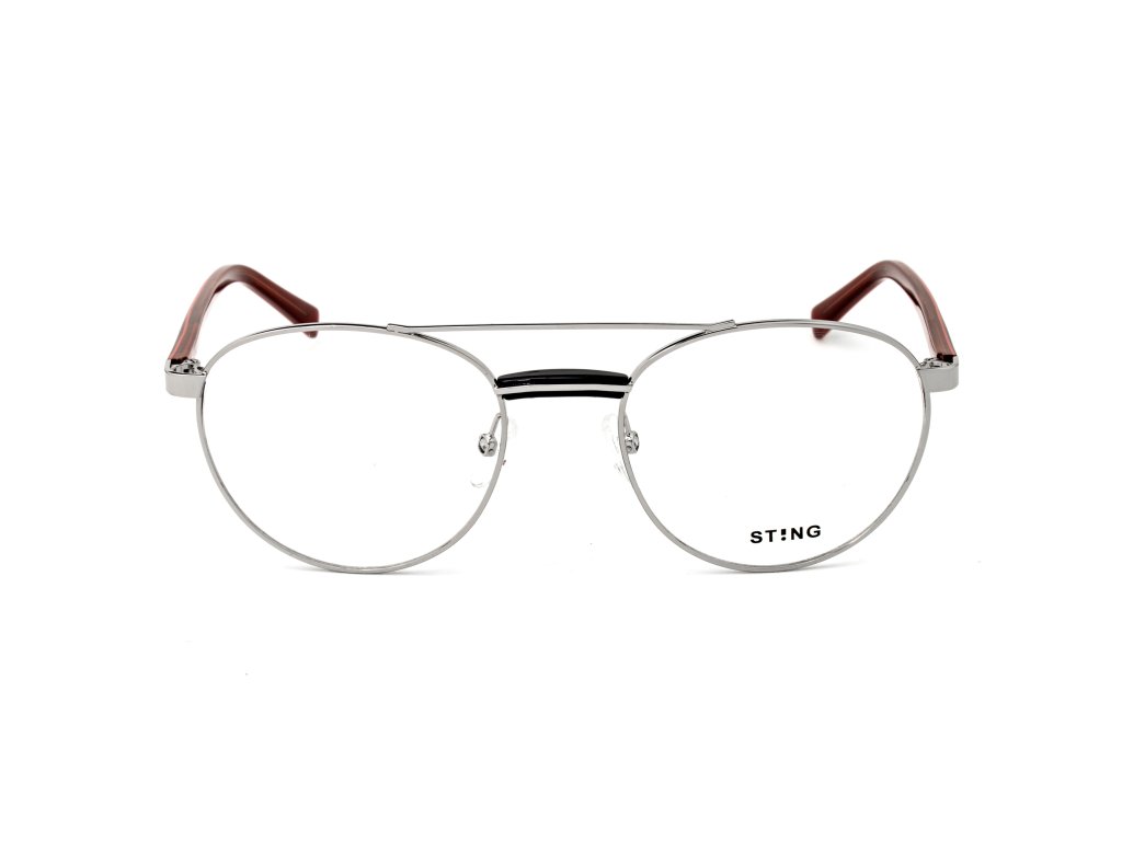 SKLÁ STING Unisex VST229520579 (šošovky/mostík/tempel) 52/20/140 mm). Materiál: Materiál: kov-acetát. Farba: lesklé paládium. Rozmery (šošovka/mostík/tempel): 1,5 mm: 52/20/140 mm.