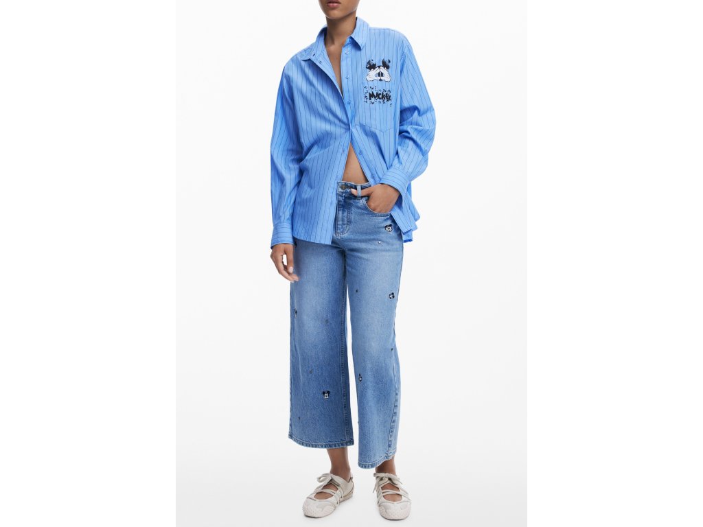 - Prvky: Jednoduchá elegancia sa prelína s jedným praktickým vreckom na hrudi, ktoré je ozdobené kreatívnou grafikou Mickey-ho.