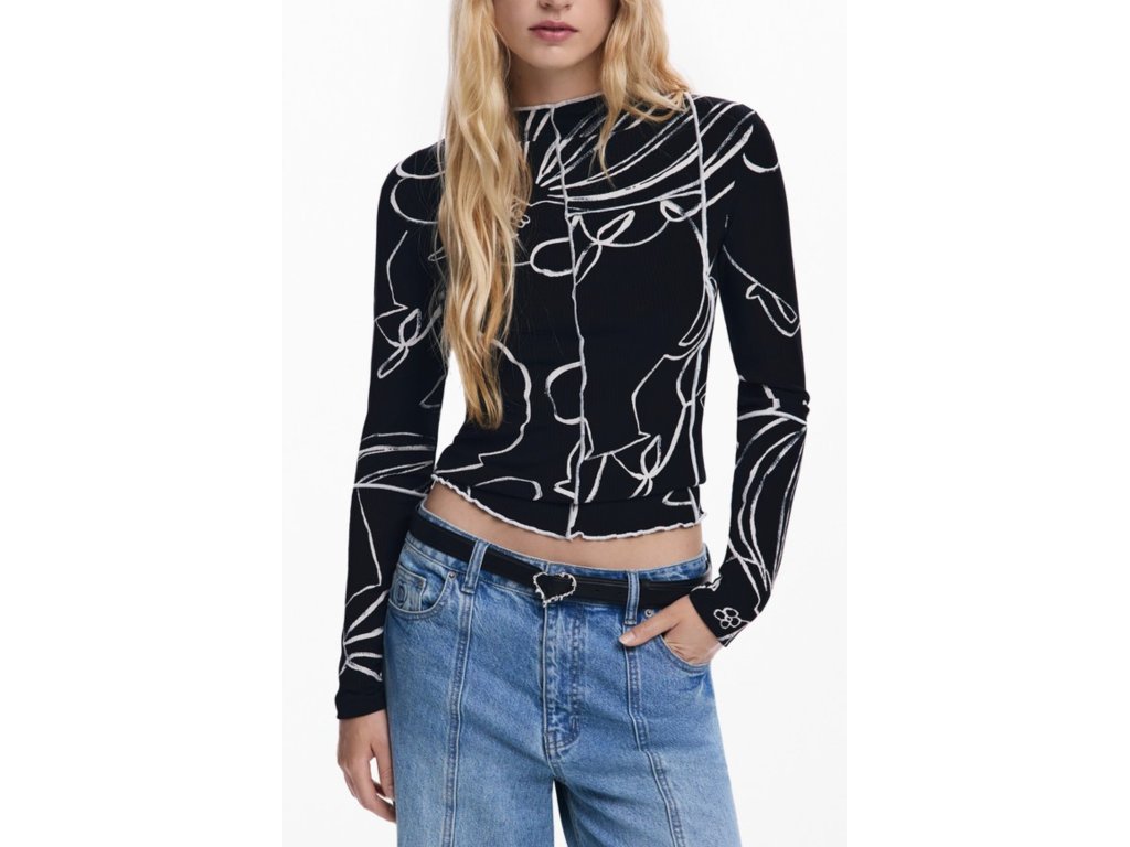 Tričko s dlhým rukávom a rafinovaným okrúhlym výstrihom vyžaruje eleganciu a komfort. Detaily v kontrastných farbách dodávajú celkovému vzhľadu pútavý aspekt a zvýrazňujú individualitu nositeľky. Logo je diskrétne umiestnené, čím vytvára sofistikovaný dojem bez zbytočného preťaženia.