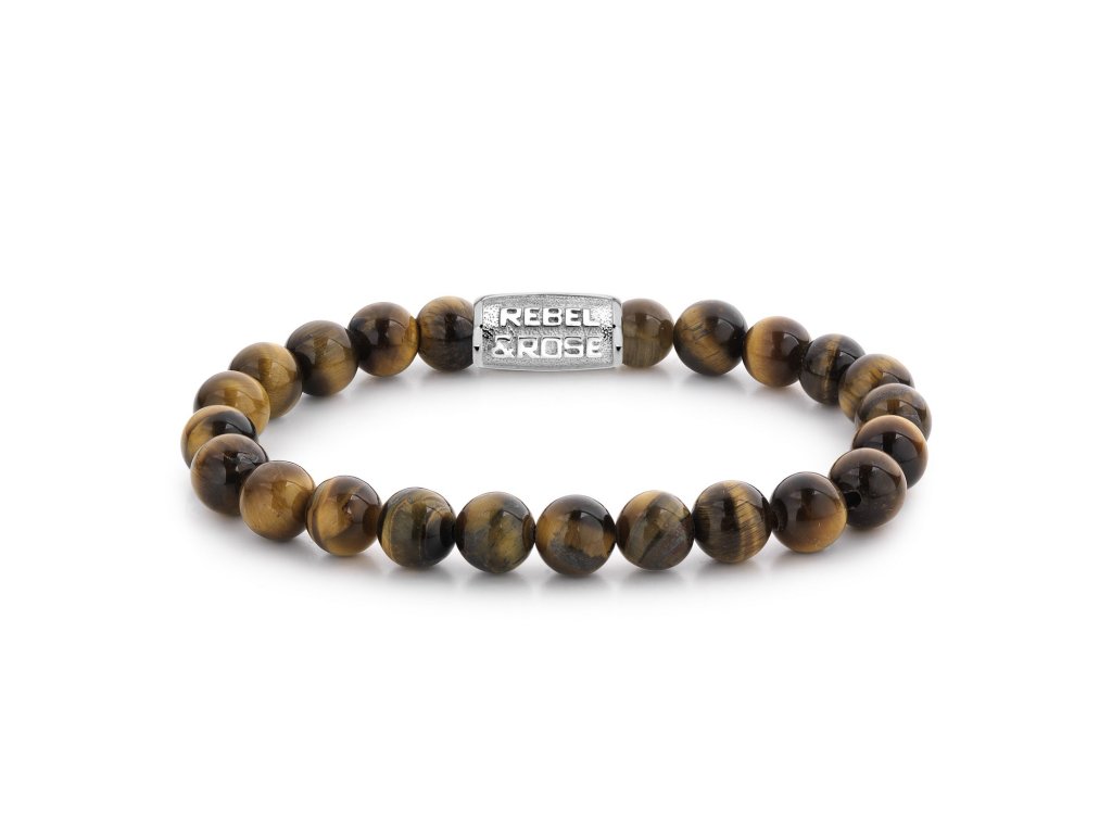 Náramok s korálkami tigrieho oka so žltými odtieňmi, zdobený strieborným zapínaním. Korálky majú priemer 8 mm.