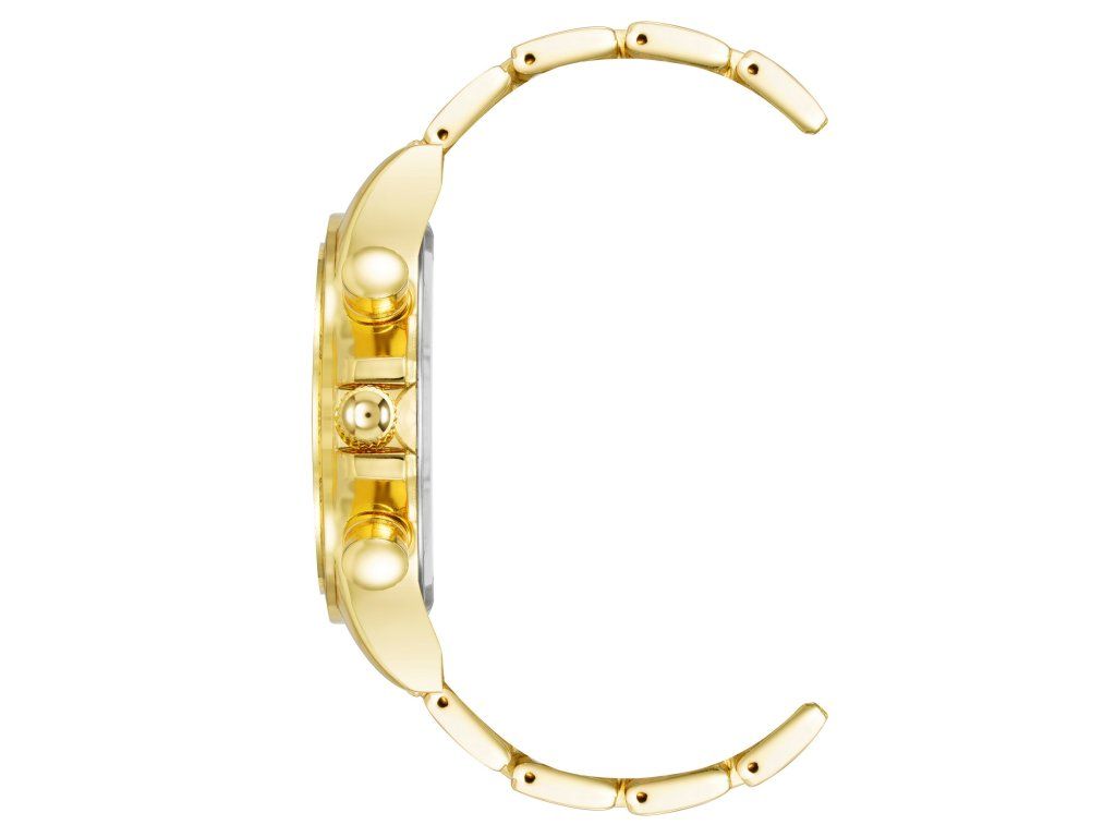 Oceľový ťah v zlatej farbe plynulo nadväzuje na okrúhle puzdrov zlatom tónečo podčiarkuje harmonický a elegantný dizajn modelu. Ciferník v jemnom zlatom odtieni dotvára jednotný vizuálny dojem a podčiarkuje luxusný charakter hodiniek.Hodinky sú vybavené spoľahlivým strojčekom Quartz a chránené minerálnym sklom.