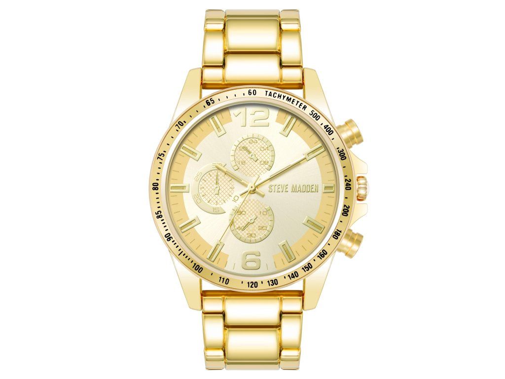 Pánske hodinky Steve Madden v sebe spájajú osobitý štýl, modernú eleganciu a luxus. Celkový zlatý dizajn pôsobí sebavedomo a nadčasovo, takže hodinky sú neprehliadnuteľnou súčasťou každého outfitu.