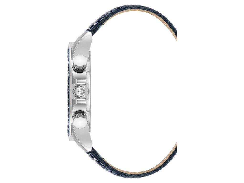 Remienok z vegánskej kože v modrej farbe zaručuje pohodlné nosenie a dokonale ladí s okrúhlym puzdromv striebornej a modrej farbe. Modrý ciferník podčiarkuje jednotný dizajn modelu a dodáva hodinkám sofistikovaný, štýlovo čistý charakter.Model je vybavený spoľahlivým strojčekom Quartz a chránený minerálnym sklom.