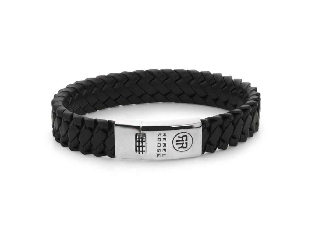 Základom jekožený remienok v čiernej farbe s pleteným vzoromktorý dodáva náramku štruktúru, hĺbku a príjemný komfort pri nosení. Celok dotváraozdobná strieborná sponaktorý slúži ako bezpečné uzavretie a zdôrazňuje charakteristický podpis Rebel & Rose.Veľkosť L+ (21,5 cm) je ideálny pre väčšie zápästia. Hmotnosť šperku je 17 g.