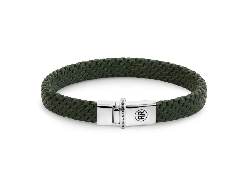 Základom jekožený remienok v zelenej farbe s pleteným vzorom, ktorý zabezpečuje pohodlie pri nosení a dodáva náramku výraznú štruktúru. Celok dotváraozdobná strieborná sponaktorý slúži ako bezpečné uzavretie a zdôrazňuje charakteristický podpis Rebel & Rose.Veľkosť L+ (22 cm) je ideálny pre väčšie zápästia. Hmotnosť šperku je 14 g.