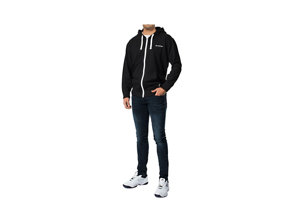 Pohodlná Pánska Mikina s kapucňou kontrastné detaily Lotto Full Zip čierna