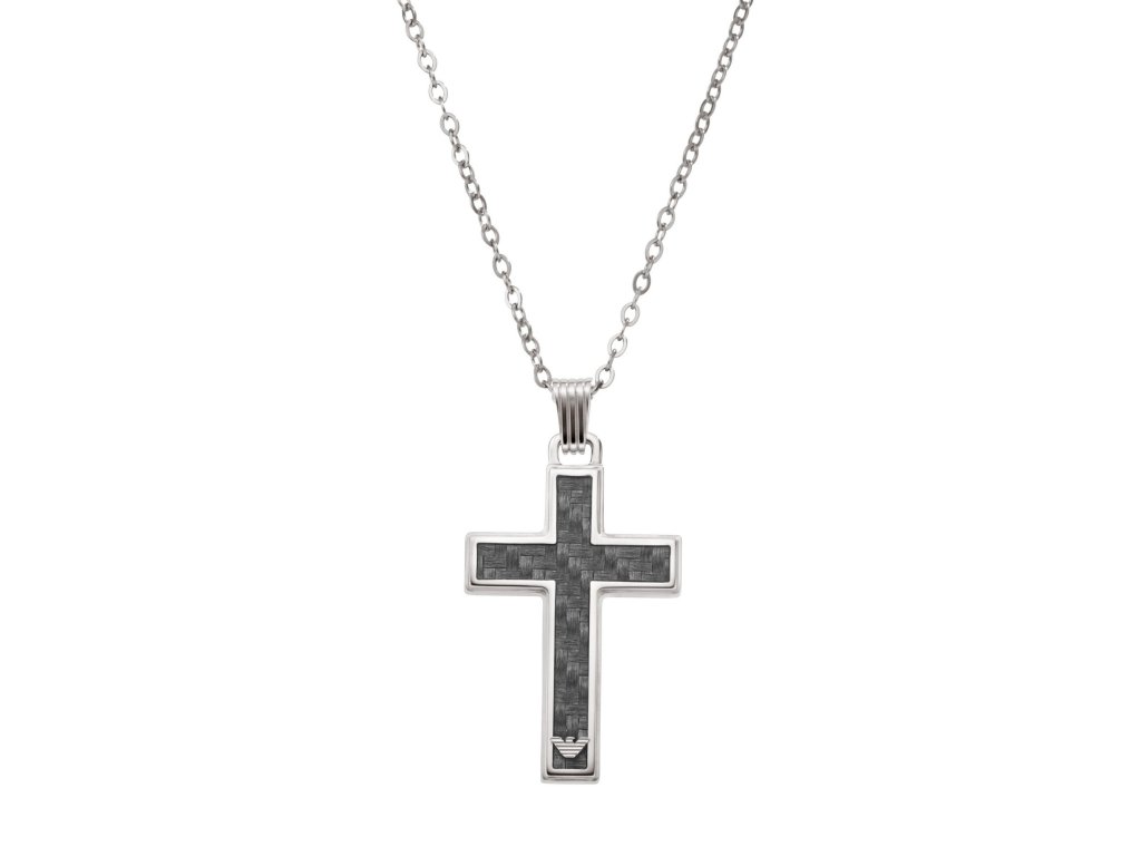 Pánsky oceľový náhrdelník s príveskom v tvare kríža od Emporio Armani prináša rovnováhu medzi klasickým symbolom a moderným dizajnom.Podrobné spracovanie s imitáciou uhlíkových vlákien v prívesku dodáva šperku technický nádych a vizuálnu hĺbku. Elegantný a zároveň výrazný šperk, ktorý rešpektuje štýl a osobnosť nositeľa.