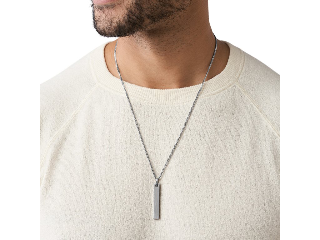 Pánsky náhrdelník Fossil Ellis Vintage Casual spája odolnosť s moderným štýlom.Prívesok z nehrdzavejúcej ocele v tvare obdĺžnika s rozmermi 4,5 × 0,8 cm pôsobí minimalisticky, ale zároveň výrazne, takže sa stane neprehliadnuteľným prvkom vášho outfitu.