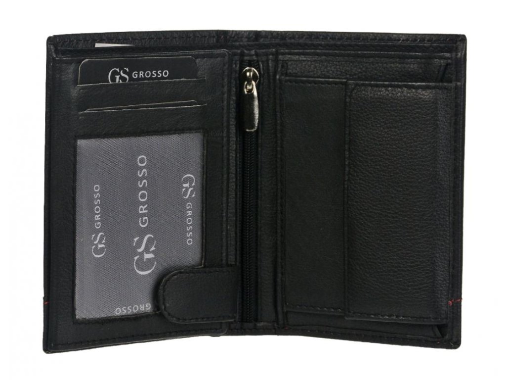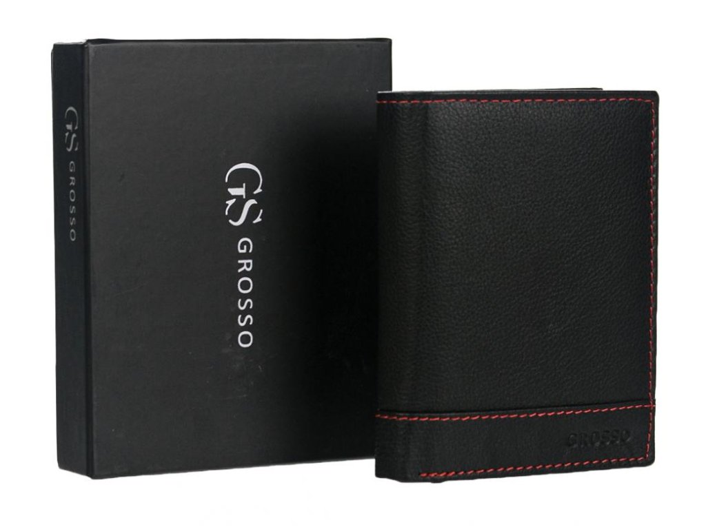 🔴🖤 GROSSO – ČIERNA PÁNSKA PEŇAŽENKA S ČERVENÝM PREŠÍVANÍM