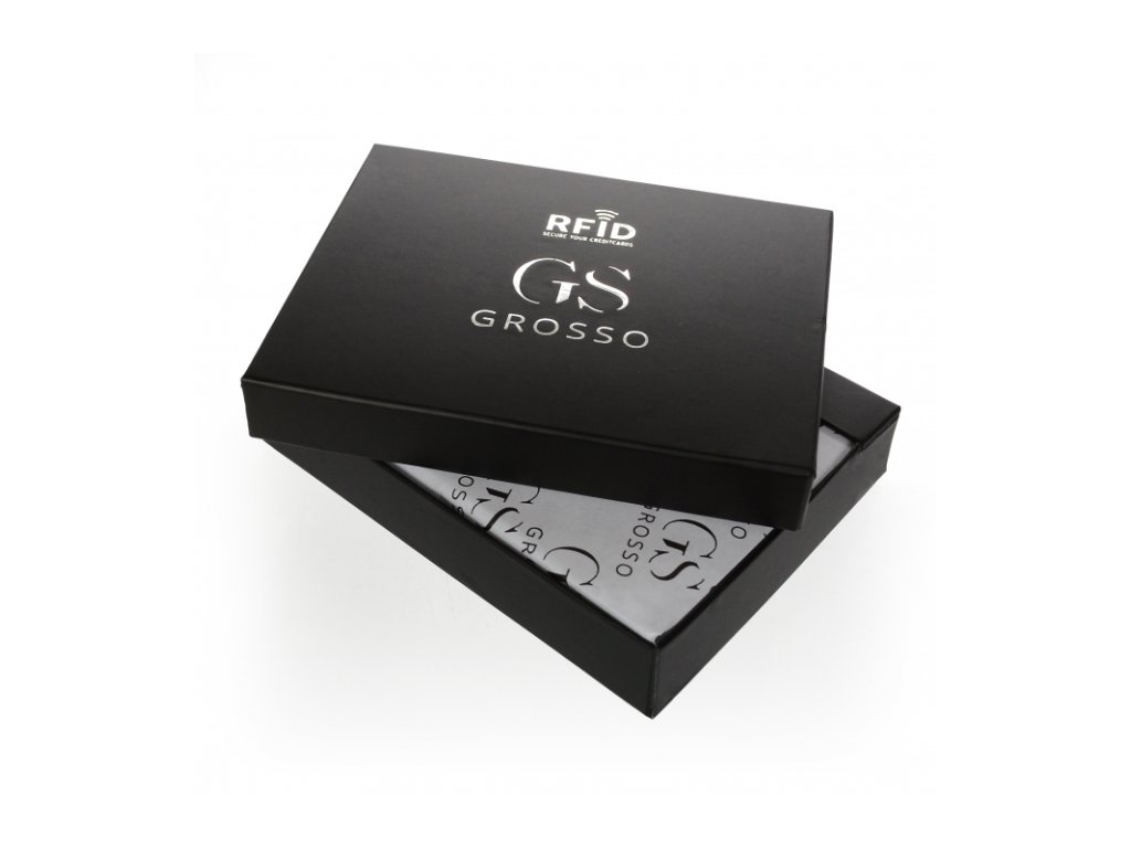 Peňaženka je dodávaná v originálnej čiernej krabičke so strieborným logom GROSSO – ideálny darček pre muža, ktorý si potrpí na štýl.