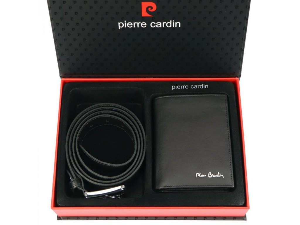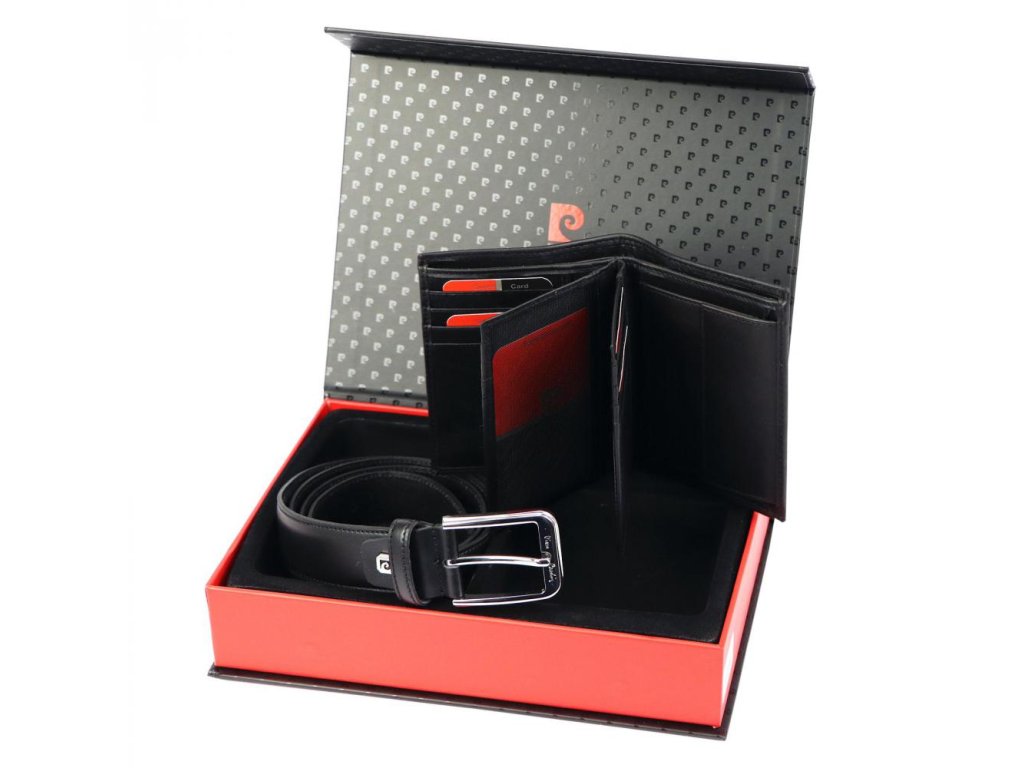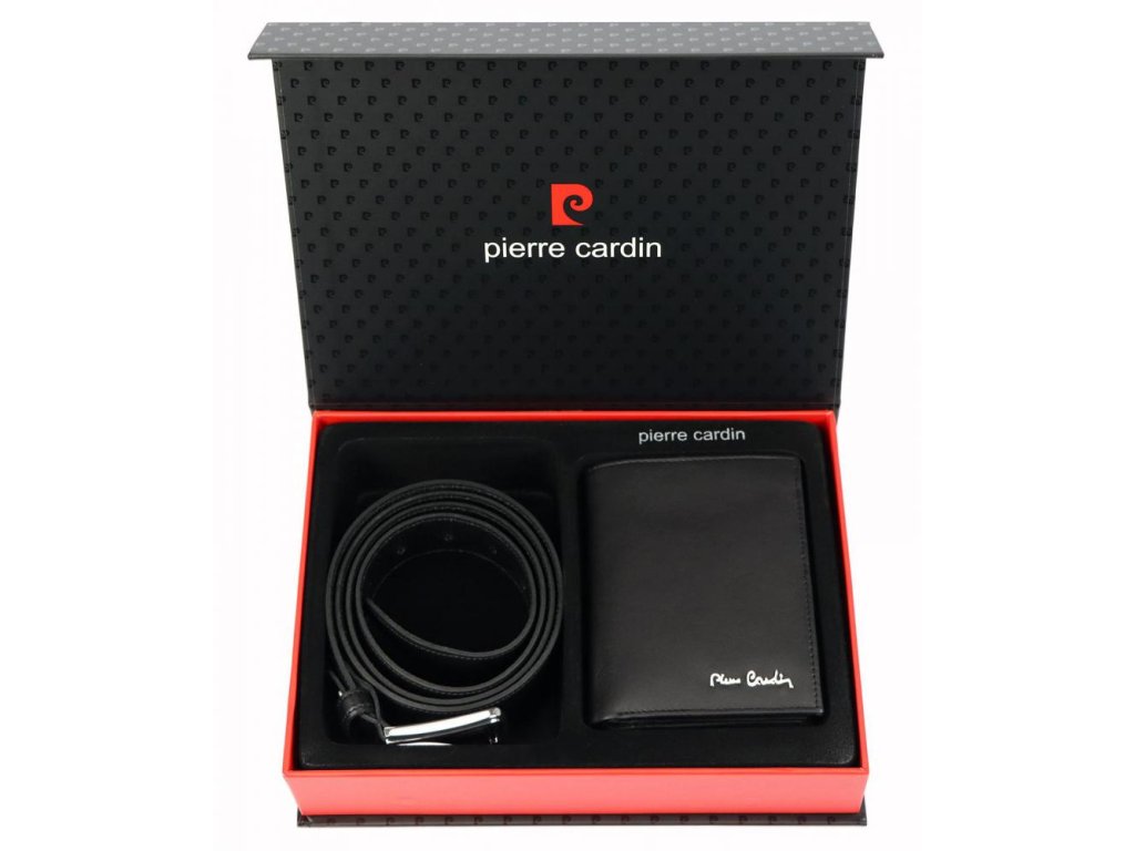 🖤 Pierre Cardin – Luxusná darčeková sada: Kožený opasok a peňaženka v čiernej farbe