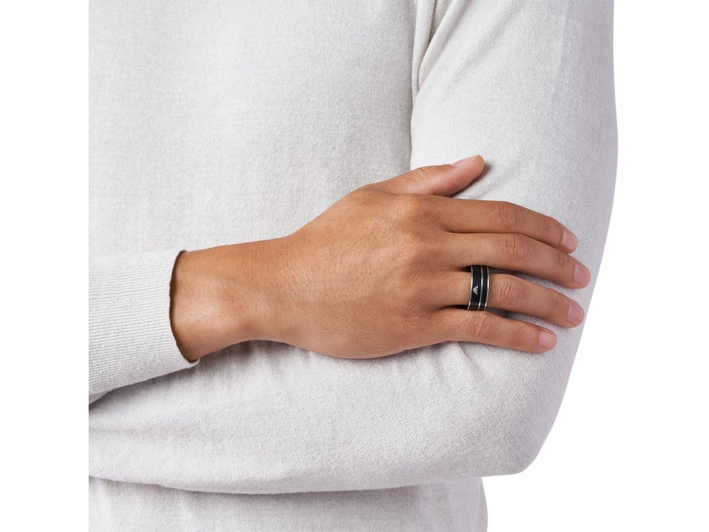 Pánsky oceľový prsteň Emporio Armani je symbolom modernej elegancie a rafinovaného štýlu.Kombinácia striebornej a čiernej farby doplnená ikonickým logom značky v strede prsteňa pôsobí mužne a zároveň decentne - ideálny pre tých, ktorí uprednostňujú šperky s charakterom, ale bez okázalosti.