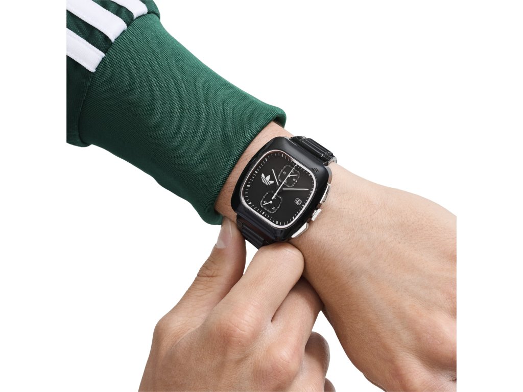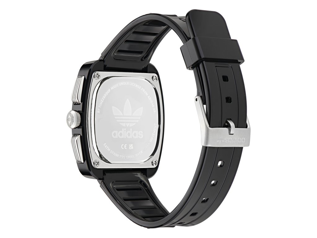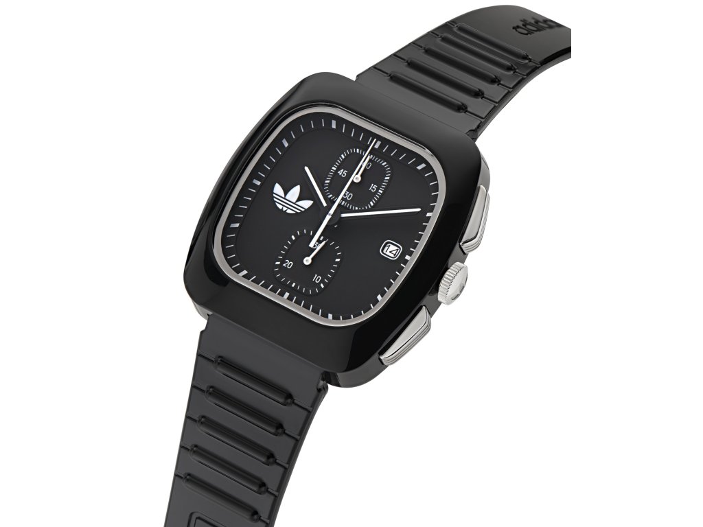 Výnimočný dizajn s charakteristickou značkou Adidas Originals. Unisex hodinky Adidas Retro Wave Two Chrono AOSY24533 zaujmú na prvý pohľadoriginálne štvorcové puzdro z biokeramiky.