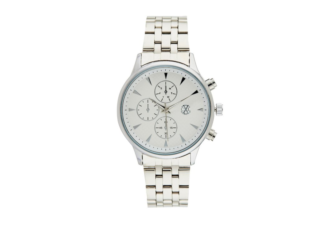 Kovové ťahadlo v striebornej farbe ladí s okrúhlym puzdromv jednotnom striebornom tónečo podčiarkuje harmonicky zladený minimalistický charakter. Biely ciferník s výraznými subciferníkmi pôsobí prehľadne a moderne.Model je vybavený presným strojčekom Quartz a chránený minerálnym sklíčkom.