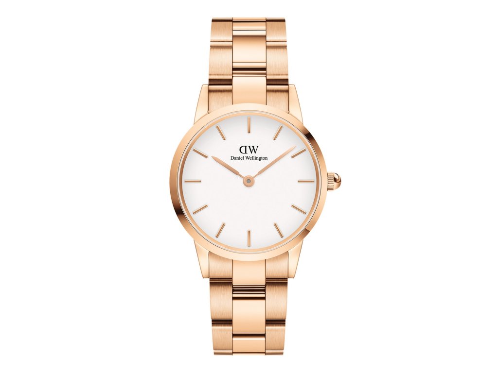 Robustné dámske hodinky z ružového zlata s bielym ciferníkom a kovovým ťahom