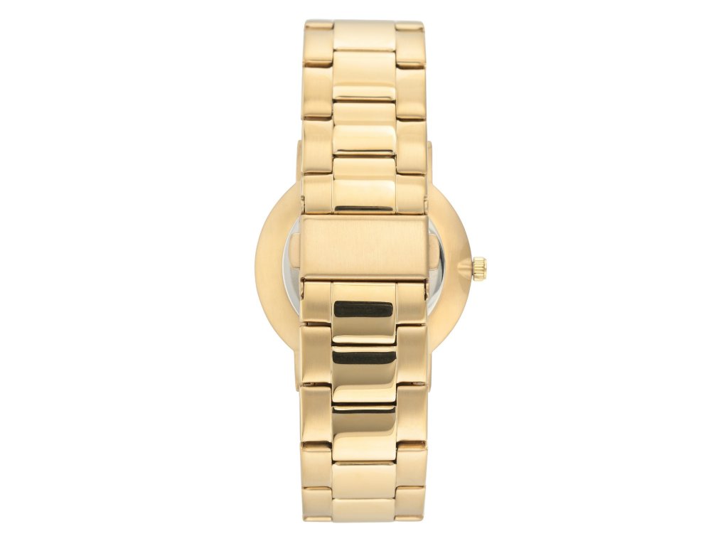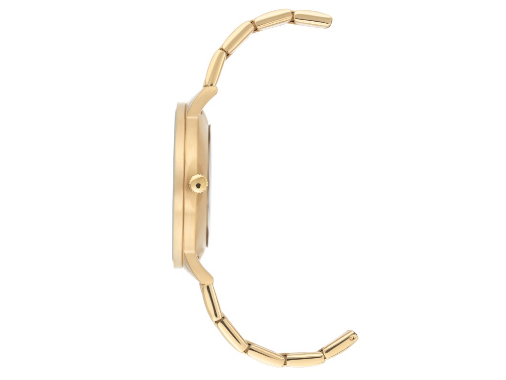 Multifunkčné pánske hodinky Armitron v zlatom prevedení, ktoré nikdy nestratia svoju eleganciu. Malé indexy na bielom ciferníku ukazujú deň, dátum aj čas. Dopĺňajú ich veľké strieborné indexy so sekundovou ručičkou. Zlatý remienok je nastaviteľný, hodinky sú vodotesné a chránené minerálnym sklíčkom.
