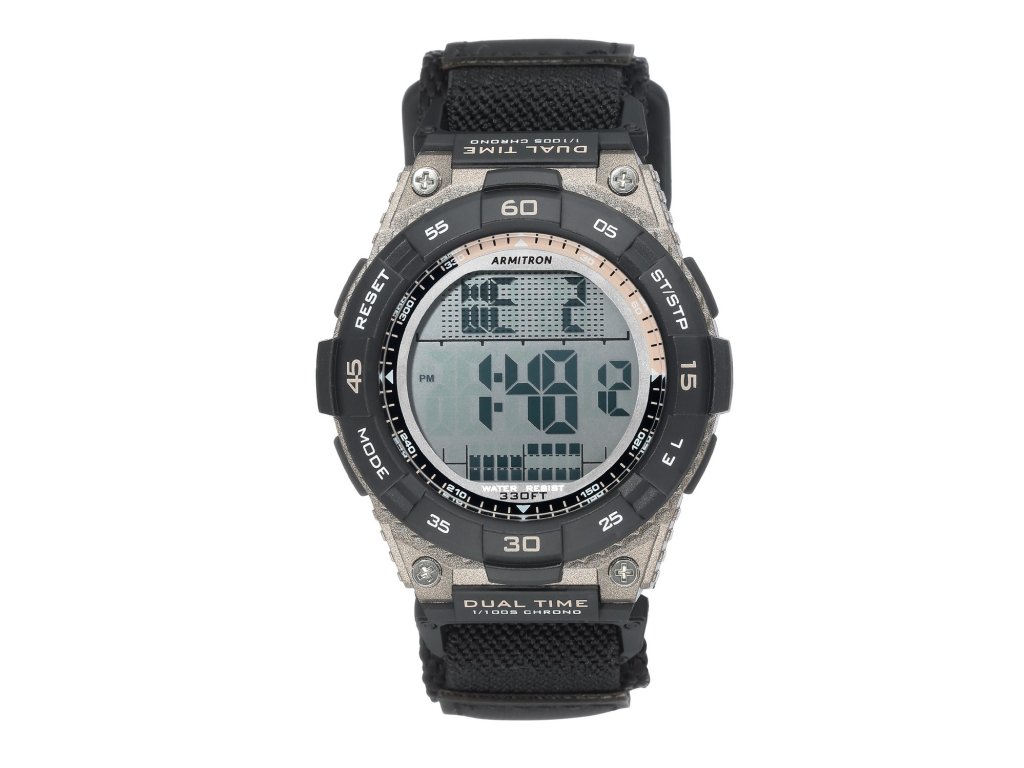 Športové pánske hodinky Armitron s multifunkčným displejom a puzdrom v cínovom odtieni.