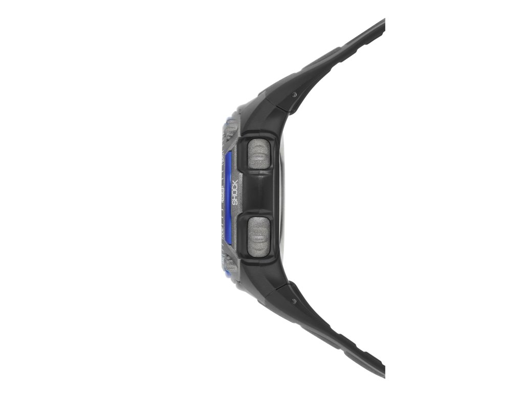 Športové digitálne hodinky so sivomodrou lunetou a bielymi značkami.