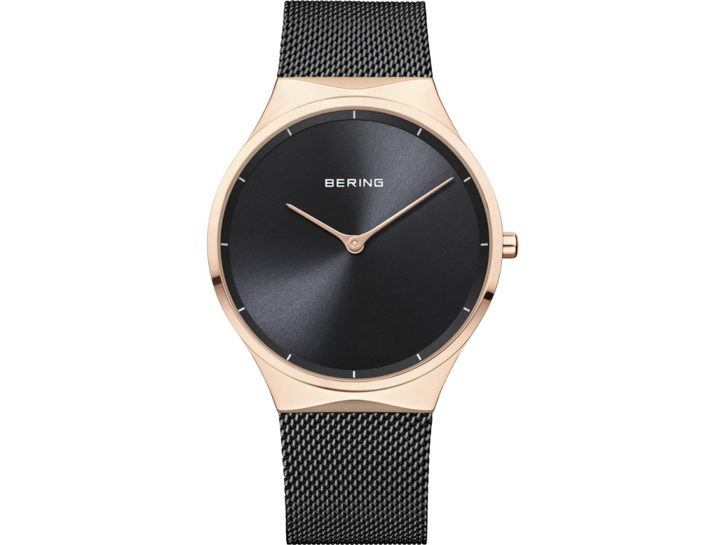 HODINKY BERING UNISEX 12138-162 (38 MM). Typ mechanizmu: QUARTZ. Displej: HODINKY: ANALÓGOVÉ. Materiál puzdra: MATERIÁL: NEHRDZAVEJÚCA OCEĽ. Farba puzdra: FARBA PUZDRA: RUŽOVÉ ZLATO. Materiál náramku: MATERIÁL NÁRAMKU: OCEĽ. Farba náramku: FARBA NÁRAMKU: ČIERNA. Farba ciferníka: ČIERNA. Typ skla: TYP SKLA: SAPPHIRE. Clousure: TLAKOVÁ NÁDOBA: PRESSURE. Priemer ciferníka: dĹŽKA CIFERNÍKA: 38 MM. Ponorný: NE