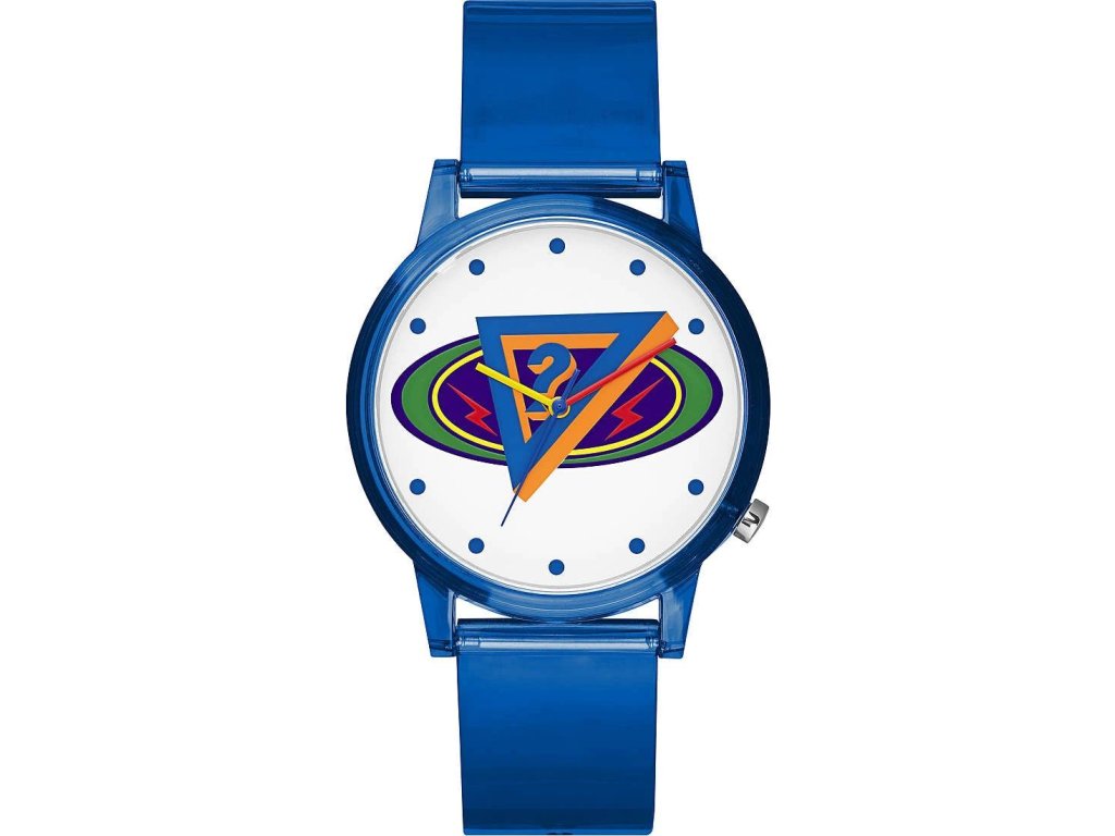 HODINKY GUESS UNISEX V1049M1 (42MM). Typ mechanizmu: QUARTZ. Displej: TYP: ANALÓGOVÝ. Materiál puzdra: MATERIÁL PUZDRA: ŽIVICA. Farba puzdra: FARBA PUZDRA: MODRÁ. Materiál náramku: MATERIÁL: RESIN. Farba náramku: FARBA NÁRAMKU: MODRÁ. Farba ciferníka: BIELA. Typ skla: SKLÍČKO: MINERÁLNE. Kľučka: BUCKLE. Priemer ciferníka: dĹŽKA CIFERNÍKA: 42MM. Ponorný: NE