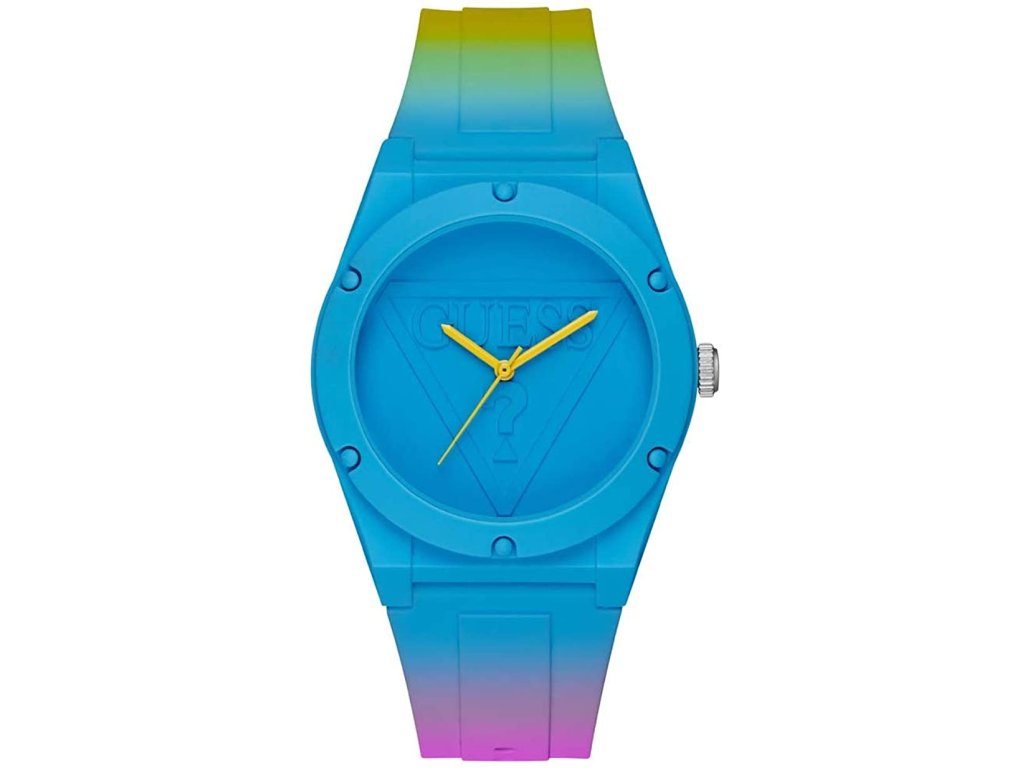 Hodinky GUESS Unisex W0979L28 (41MM). Typ mechanizmu: QUARTZ. Displej: TYP: ANALÓGOVÝ. Materiál puzdra: MATERIÁL PUZDRA: GUMA. Farba puzdra: FARBA PUZDRA: MODRÁ. Materiál náramku: MATERIÁL NÁRAMKU: SILIKÓN. Farba náramku: FARBA NÁRAMKU: MULTICOLORED. Farba ciferníka: MODRÁ. Typ skla: SKLÍČKO: MINERÁLNE. Kľučka: BUCKLE. Priemer ciferníka: dĹŽKA CIFERNÍKA: 41MM. Ponorný: NE