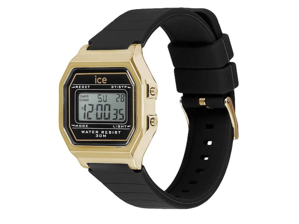 HODINKY ICE UNISEX 022064 (32 MM). Typ mechanizmu: QUARTZ. Displej: DIGITÁLNY. Materiál puzdra: MATERIÁL PUZDRA: RESIN. Farba puzdra: ZLATÁ. Materiál náramku: MATERIÁL NÁRAMKU: ERASER. Farba náramku: FARBA NÁRAMKU: ČIERNA. Farba ciferníka: ZLATÁ. Typ skla: SKLÍČKO: MINERÁLNE. Kľučka: BUCKLE. Priemer ciferníka: dĹŽKA CIFERNÍKA: 32 MM. Ponorný: NE